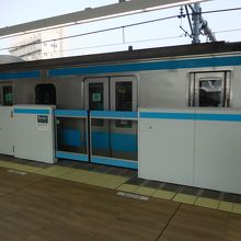 京浜東北線は、水色のラインが入っている車両で、埼玉県の大宮駅から、東京駅を通り、神奈川県の大船駅までを走る路線です。新橋駅から横浜方面に乗車しようとした所、平日の日中は快速運転で通過になってしまう為、途中駅で京浜東北線に乗り換えました。昼間だったので、割と空いている印象でした。
