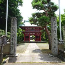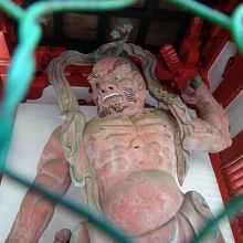 正面から見ると赤い仁王門が目を引きます。仁王様は網で防護されているので、写真を撮るにも一苦労。