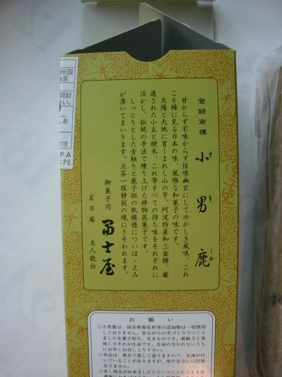 徳島を代表する高級甘味「小男鹿(さおしか)」