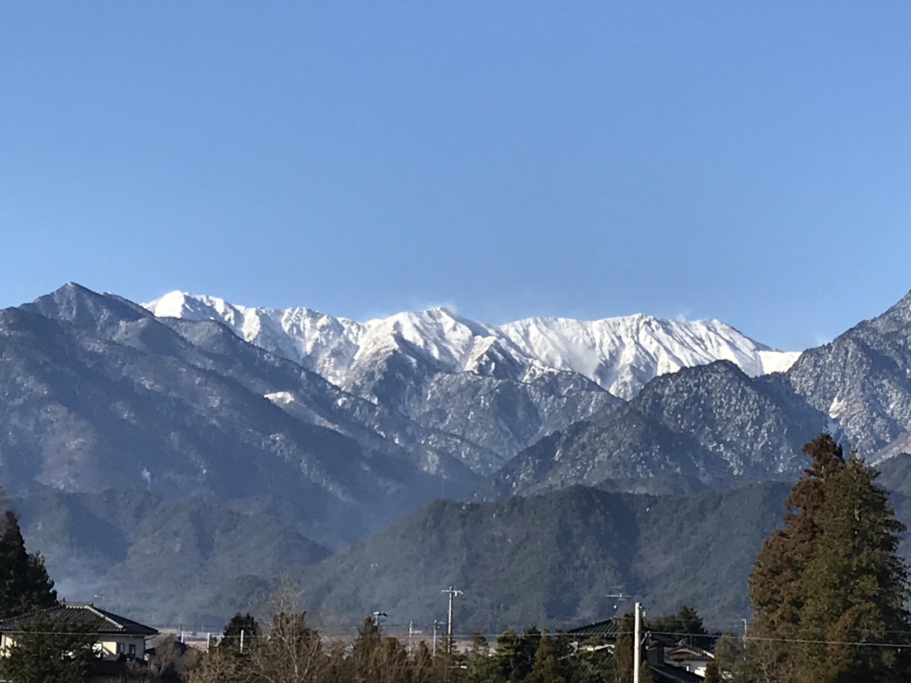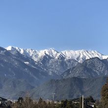 冬の松川は、道路の凍結が心配なのですが、天気のいい、この日は結構快適に運転できました。空気の澄んだ冬の季節は景色も素晴らしいのですが、道の駅の施設の裏側は冬のアルプスの絶景が望めます。あまり知られてないようですが、スタッフの方に教えていただき驚きました。