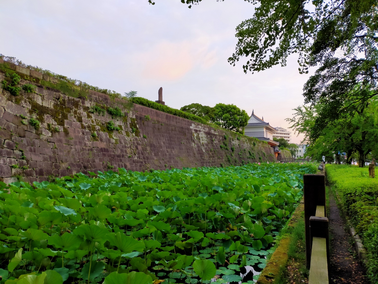 鹿児島城は別名鶴丸城と呼ばれ、今は城壁だけが残っています。