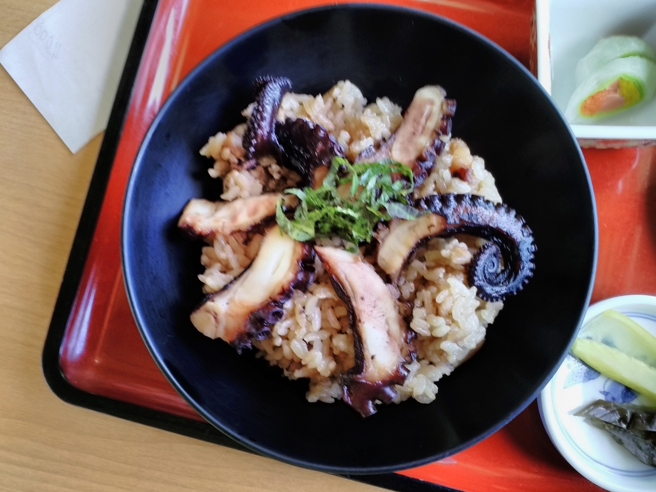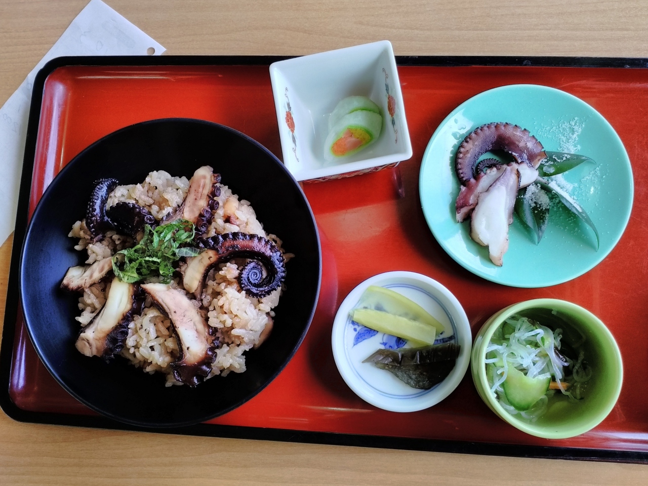 オーダーしたのは名物のタコめしと新鮮な魚介類を使ったお刺身定食でした。
