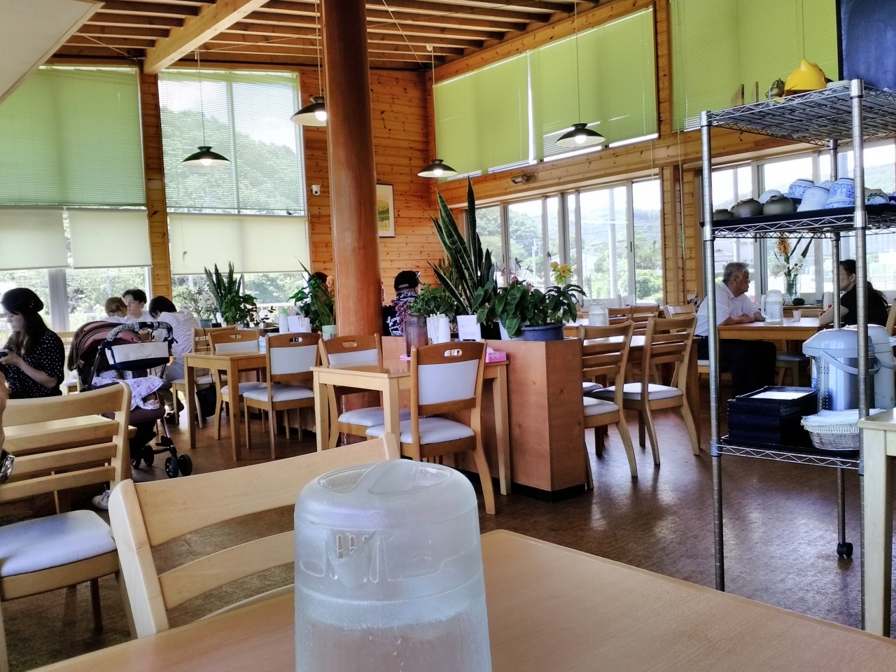 昼食時間に合わせ道の駅くにみのレストラン・美浜に着くようにし11:30過ぎに到着しました。いつもは待ち時間がある当店ですが店内に空席が目立ち新型コロナの影響が此処でもあるんだと思いました。換気をよくするためエアコンで部屋を冷やしていますが窓は網戸にして開けっ放しで海岸線の風が吹き込み心地よい状況でした。