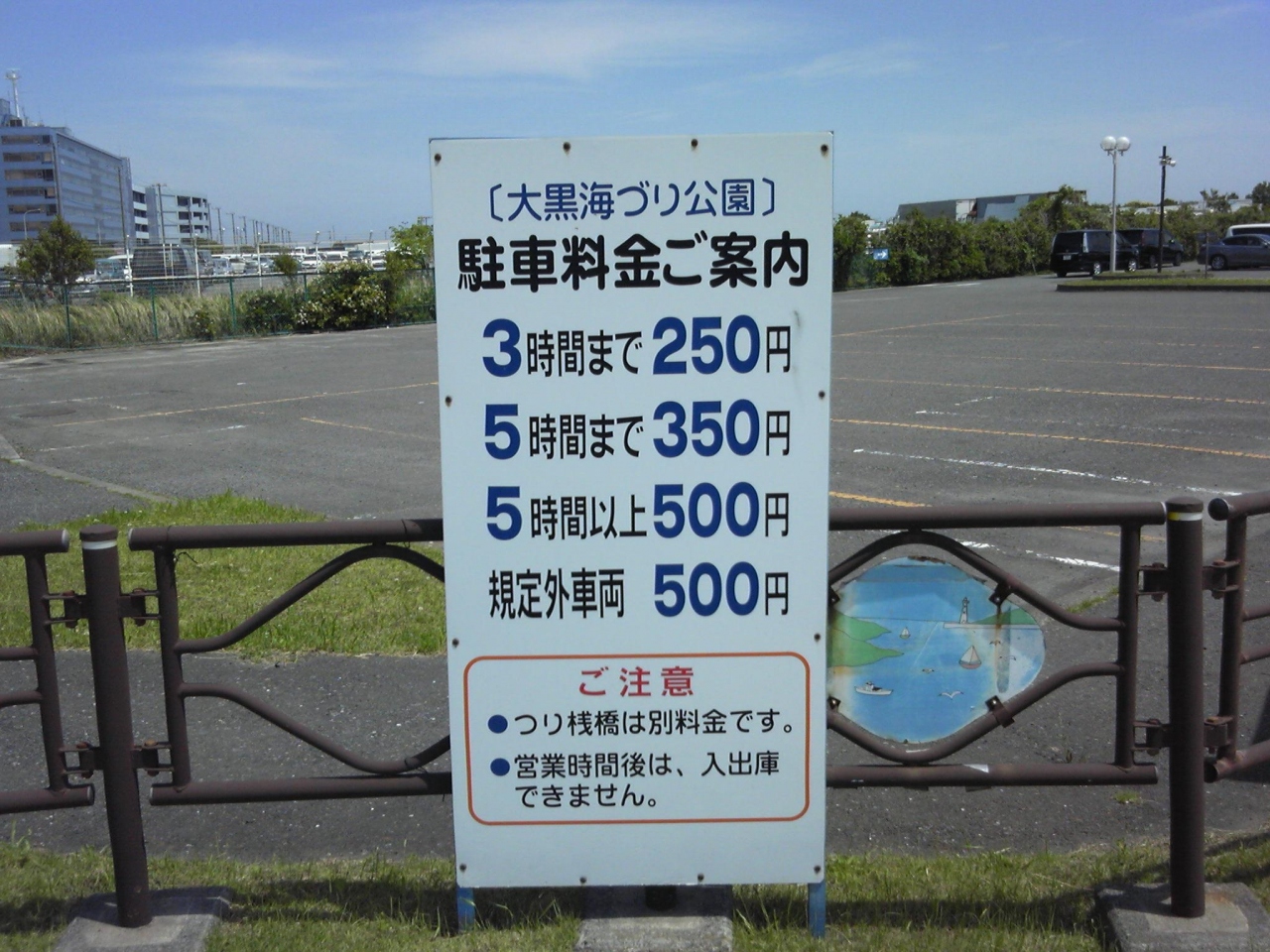嬉しいのは駐車料金で3時間まで250円、5時間まで350円と安いです。釣りをしなくても楽しめます。