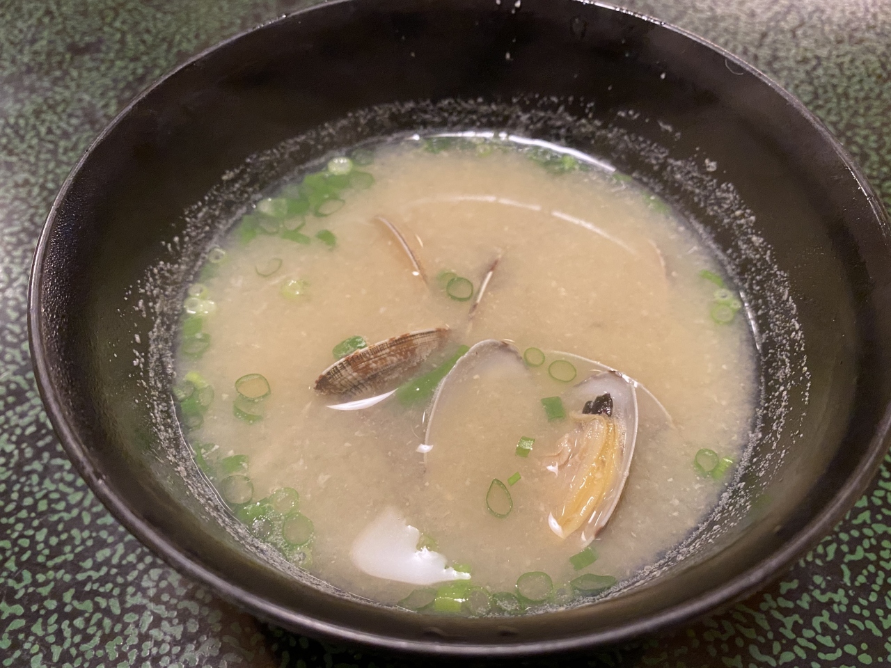 〆に頼んだカンピョウ巻きは、ワサビが入ってなかったので、別にもらいました。貝汁は程よい甘さでした。
