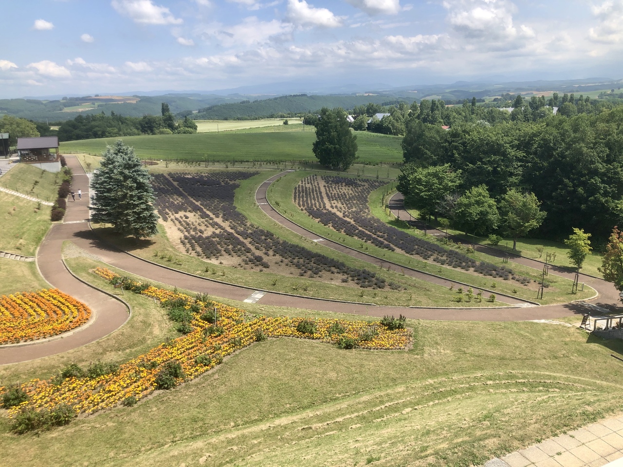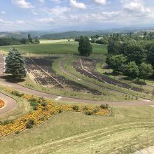 高台に二階建ての展望台があり、周辺には花壇がありラベンダーも植えられています。