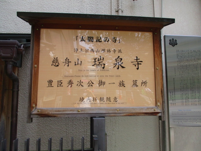 豊臣秀次一族墓所として知られる瑞泉寺。ひさしぶりに通りかかると、門前に新しい碑が立っていました。「橋本佐内訪問の地 岩瀬忠震宿所跡」と文字が刻まれていました。岩瀬氏はアメリカ列強5か国との修好通商条約に調印した、日本開国を進めた人です。瑞泉寺に2か月滞在したことがあり、その時福井藩士の橋本佐内が訪ねてきたそうです。いろんな歴史をもつ寺院だなと新たな発見がありました。