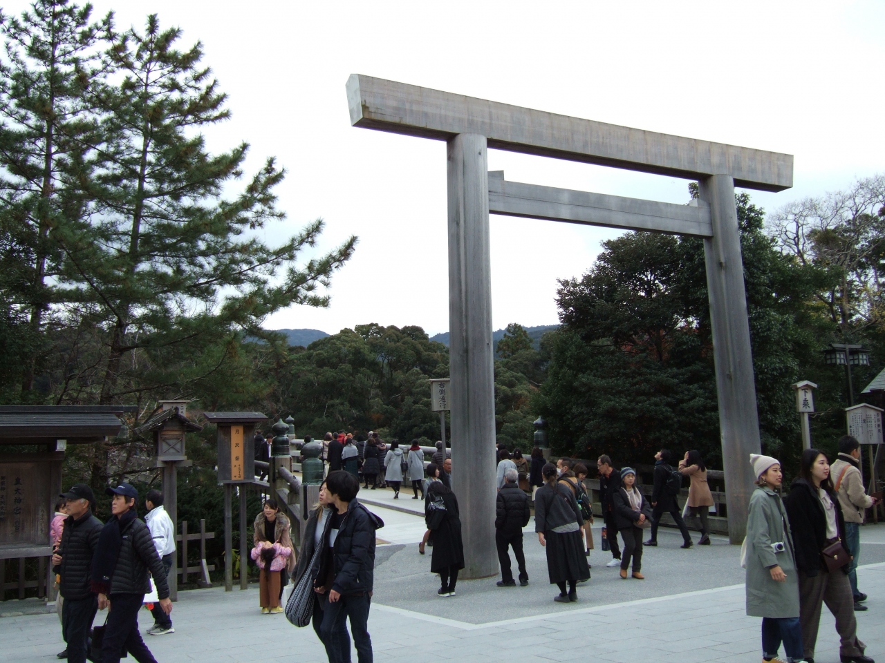 12月の平日はかなり空いていましたが、1月の土曜はかなりの人出です。宇治橋を渡ってからの内宮の境内も行列ができており、ゆっくりとしか進めませんでした。