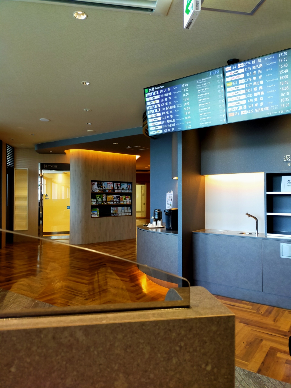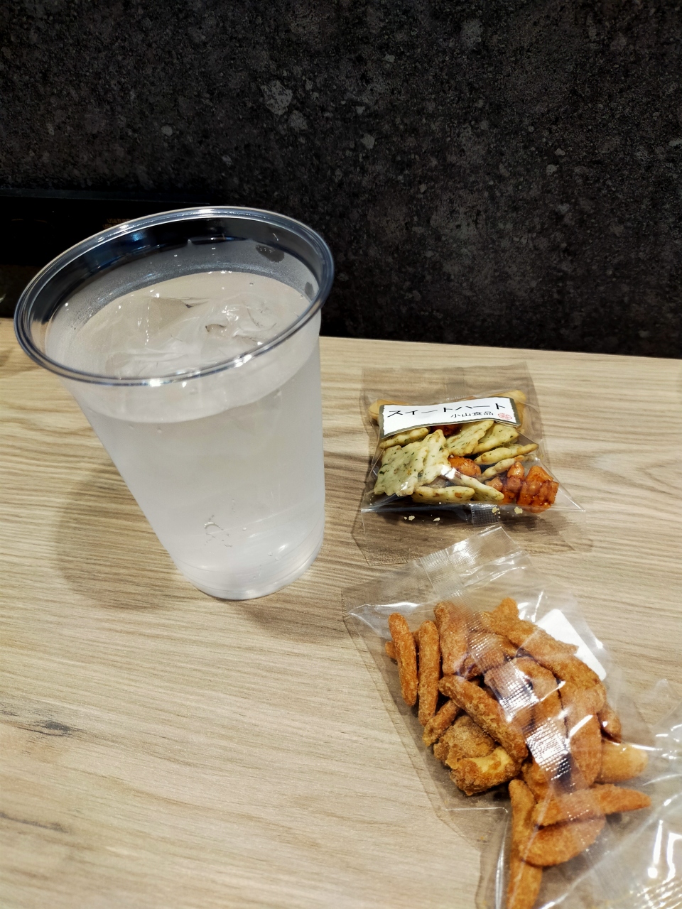 地方の空港ではカードラウンジでアルコールが無料で飲めるところがありますが、鹿児島空港のラウンジでも芋焼酎の試飲をすることができました。受付で2種類のつまみももらえ、席もゆったりしていて出発まで寛ぐことができました。