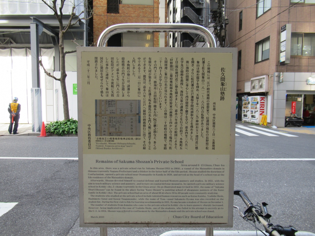佐久間象山の私塾があったのは、現在の中央区銀座となります。