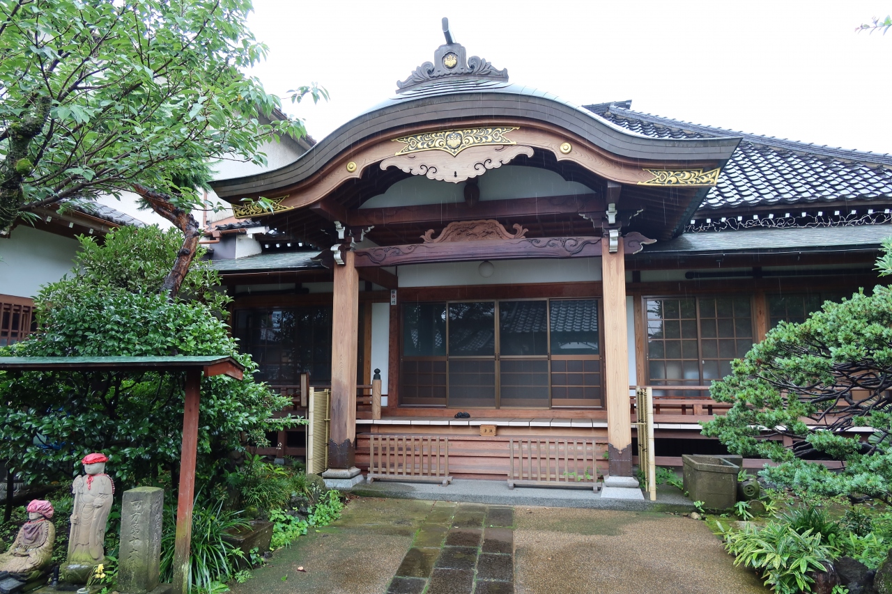 三田の寺町には移転してきた寺院が多いですが、玉鳳寺もその一つです。幽霊坂の中腹辺りに玉鳳寺はあり、寛永12年に移転して来たそうです。小さな寺院ですが、山門の左手に安置された化粧延命地蔵が見所。白粉を体の悪い部位に塗ると治癒すると言われ、真っ白になったお地蔵様は一見の価値ありです。