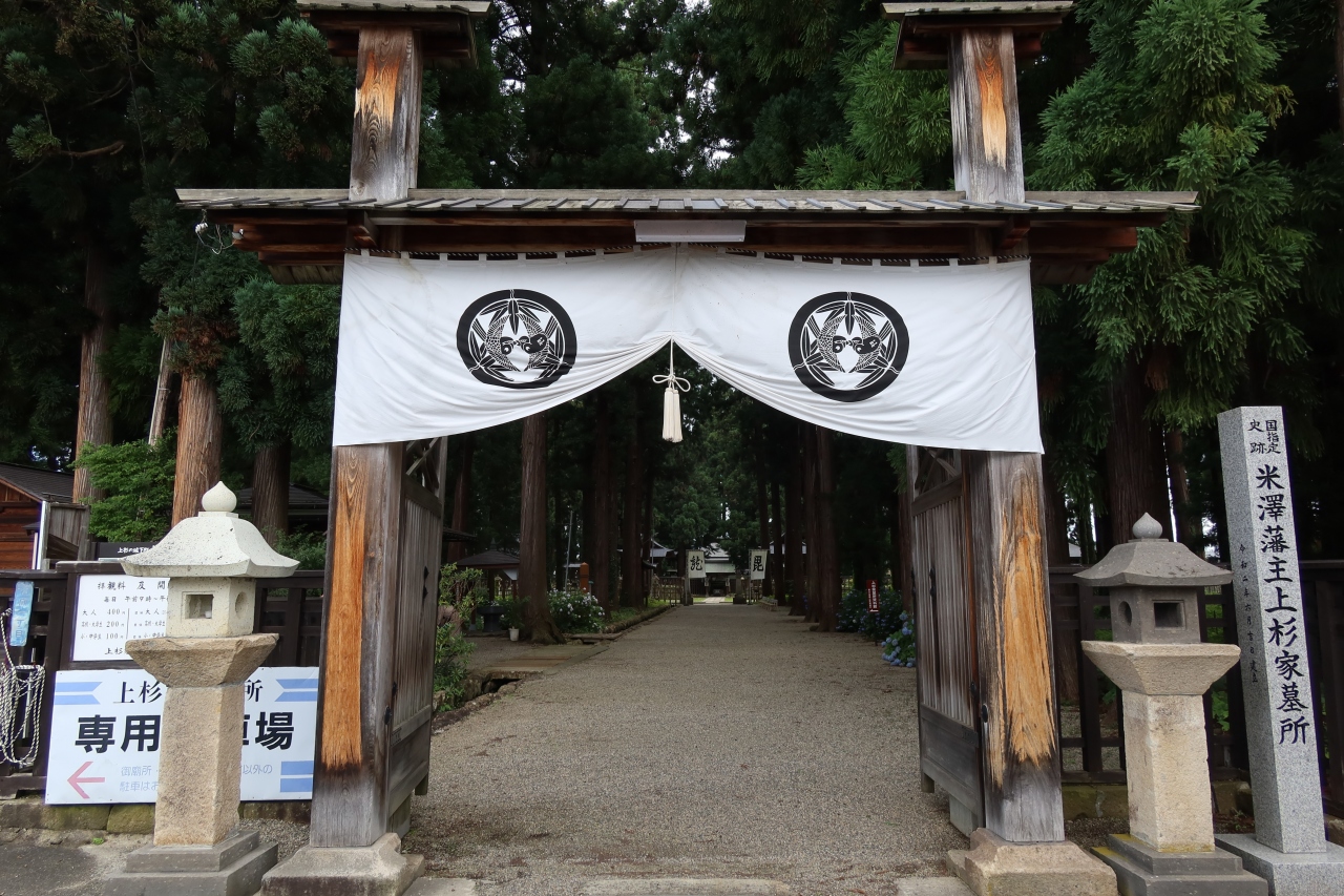 米沢の上杉神社から西に1km程のところに上杉家廟所があります。老杉木立に囲まれた廟所は凛とした雰囲気が漂い、歴代藩主十二代の廟が左右交互に並んでいます。時代時代によってそれぞれの廟の作りが、豪華であったり、質素であったりと変遷があり、見応えがあります。その中でも一番人気なのは鷹山公の廟。質素です。