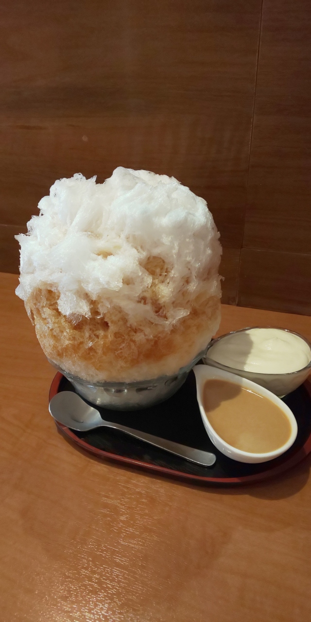 アッサム&ディンブラのかき氷に生クリームトッピングをオーダー。