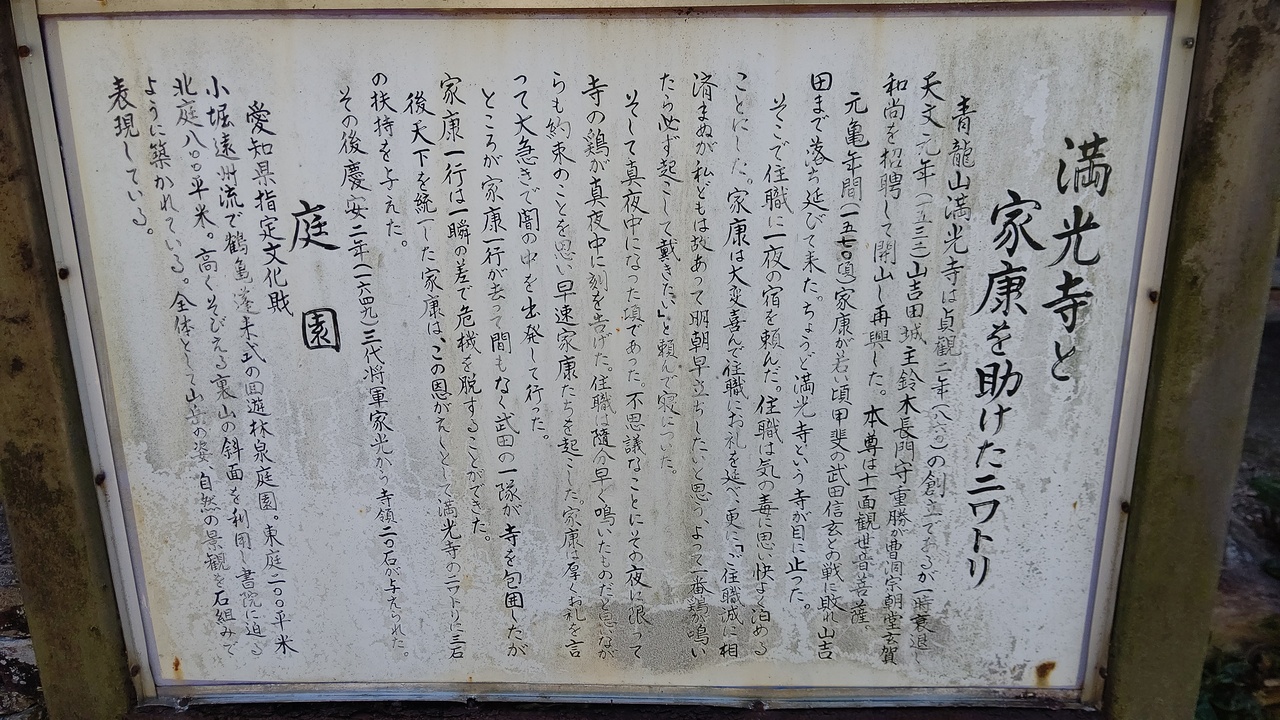 小堀遠州流で鶴亀蓬莱式の四遊林泉庭園。道の駅鳳来三河三石の裏にある寺院。道の駅に立ち寄っても、気づかず素通りしてしまう方がいるかもしれません。庭づくりが好きな人にはぜひ見てほしいと思います。また、体力のある方は山を登って柿本城にも足を運んでください。