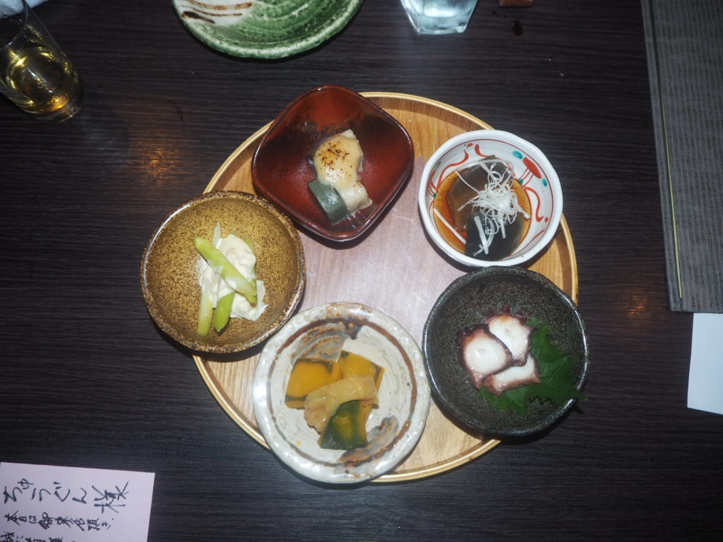 おばんざいが10種ほど用意されていて、その中から5種小鉢サイズを選んで1300円でした。