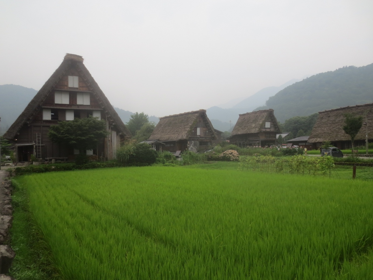 集落内だといたるところで合掌造りが重なって見えるところがあって、まわりの田んぼとのコントラストがとてもよかったです。
