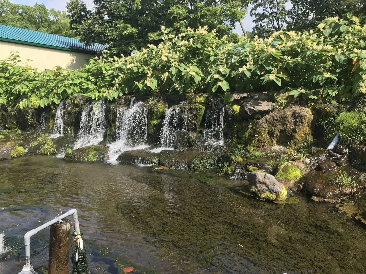 いつも賑わっています。無料で水をくめてお豆腐屋さんもあります。このお豆腐がいい値段するけれど甘くて大豆の味がしっかりしていておいしいです。お水は週末だと結構並びます。みんなタンクでくんでいきますので順番待ち