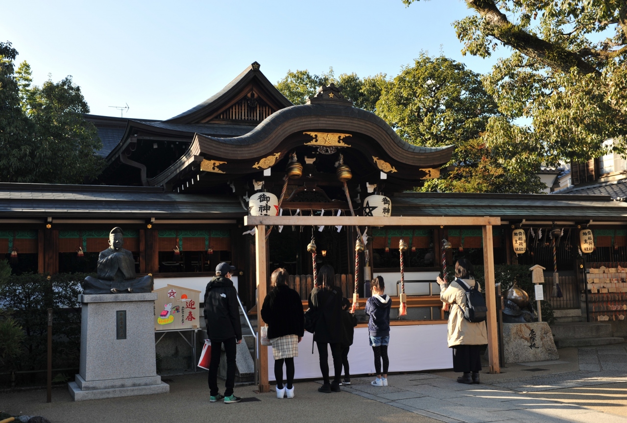 御金神社や野宮神社など若い女性を中心とする人気を極端に集める神社が京都にもある。この神社もそうだ。20年ほど前に来た時は恋占いがよく当たるというので人々を引き付けていたが、最近はフィギュアスケートの羽生結弦選手がフリー演技の曲に「SEIMEI」を選んだことでファンが押し寄せているという。便乗商法で周辺には駐車場やグッズを売る店舗まで出現しており、すっかり騒がしいエリアになってしまった。