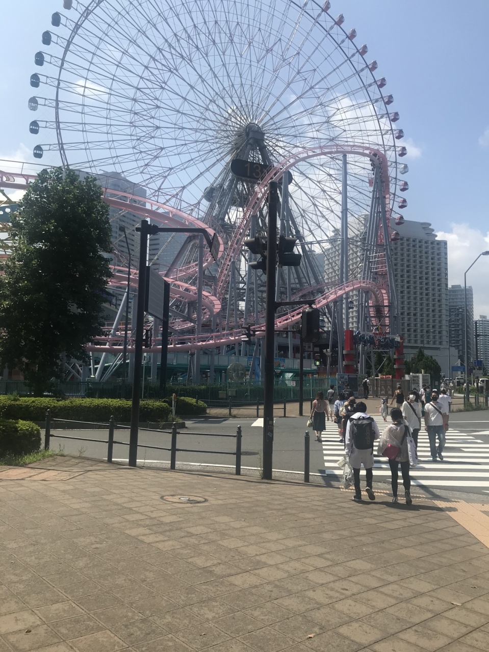 横浜にある、横浜コスモワールドです。夏休み中は、子供連れなどもたくさん遊びに来るレジャー施設になります。スピニングコースターなど、大人でも楽しめる乗り物などもあります。観覧車に乗れば景色が楽しめます。