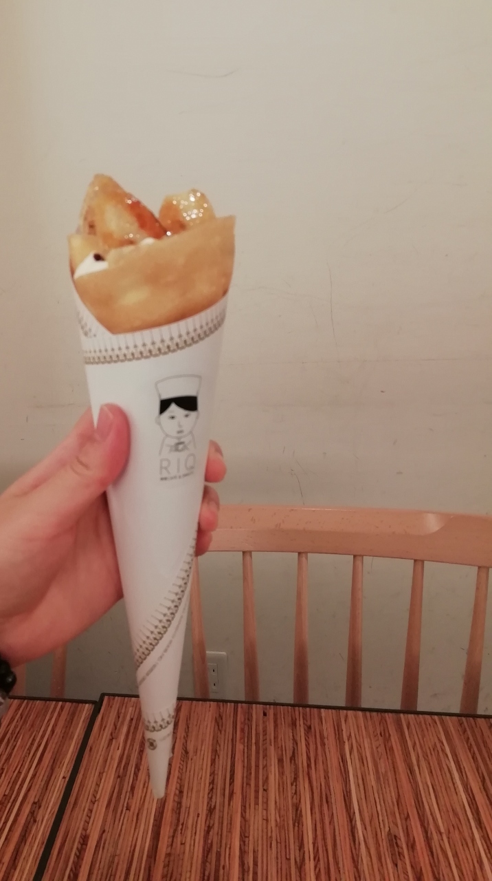 小綺麗なカフェ、タピオカ生地のクレープは絶品でした