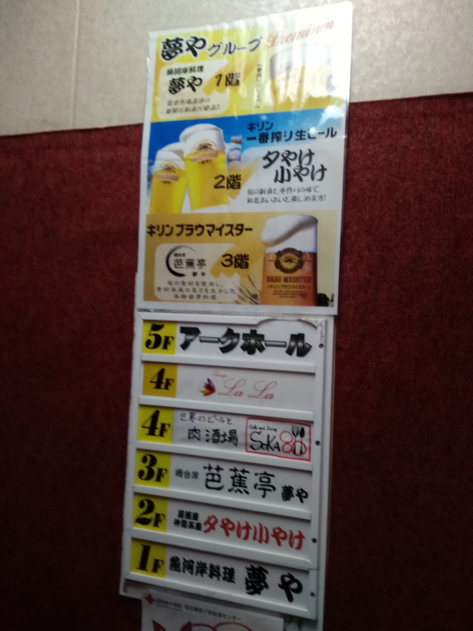 居酒屋ビルの2階。エレベータがある。