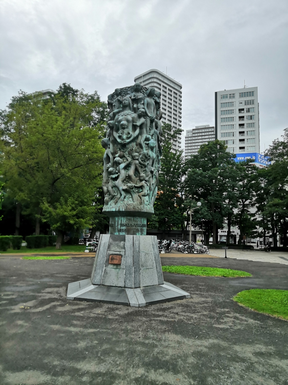 中島公園の3番出口からすぐの、広場のような開けたスペースにあるモニュメントです。結構大き目のサイズなので遠くからでも目立ちます。題名からして、森の躍動感などを表しているのかなとは思いますが、ちょっとごちゃごちゃした感じもしました。