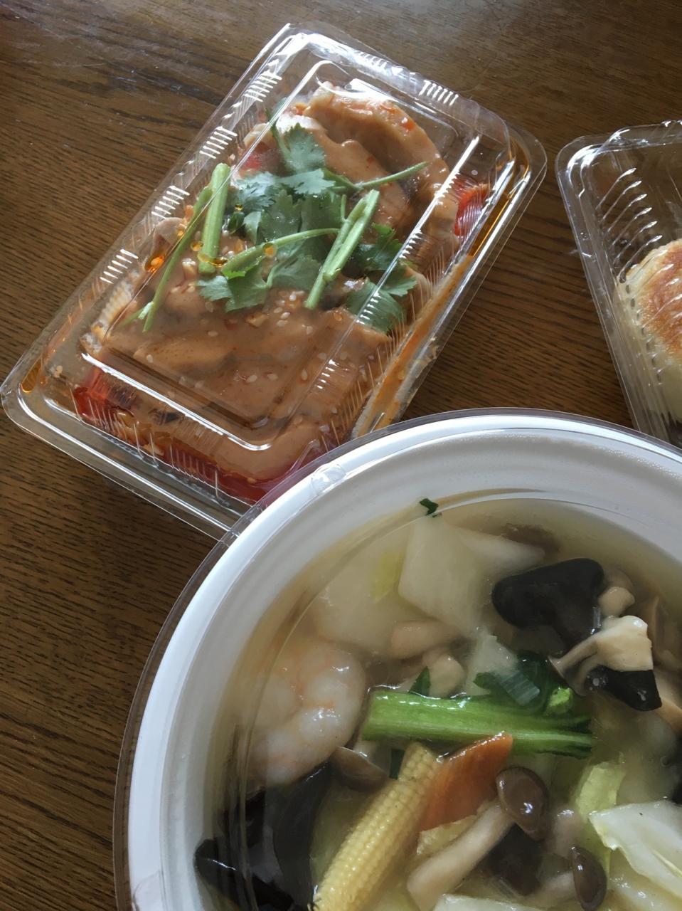 焼き餃子は分厚い皮がぷりぷりで、タレもおいしかったです。よだれ鶏は真っ赤なラー油に漬かっているだけでなく、上から濃厚なゴマダレも掛かっていて、満足感が高かったです。