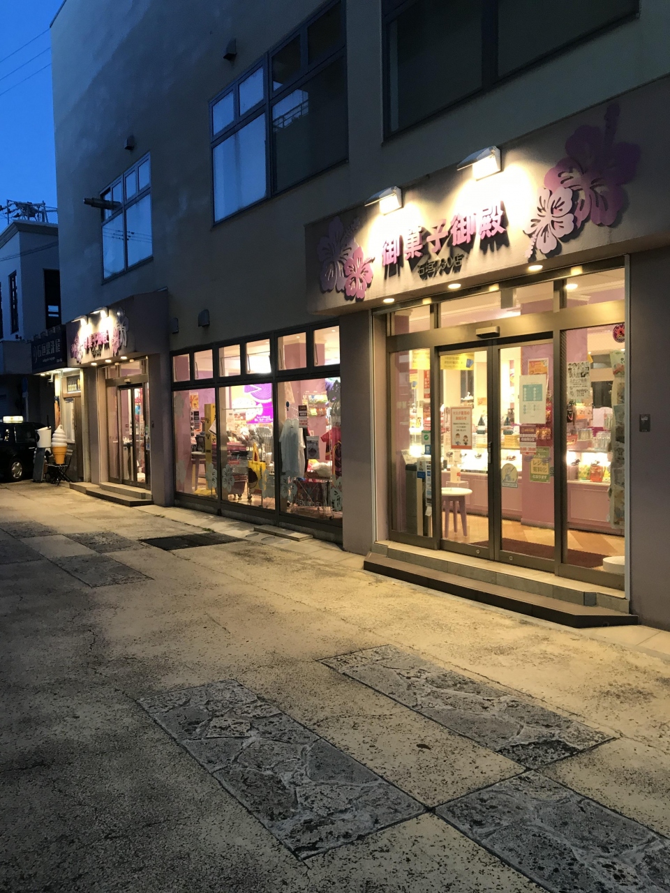 石垣のお店は店舗も大きめなので、紅芋タルトのおみやげ物以外に、ケーキやグッズまで販売しています。