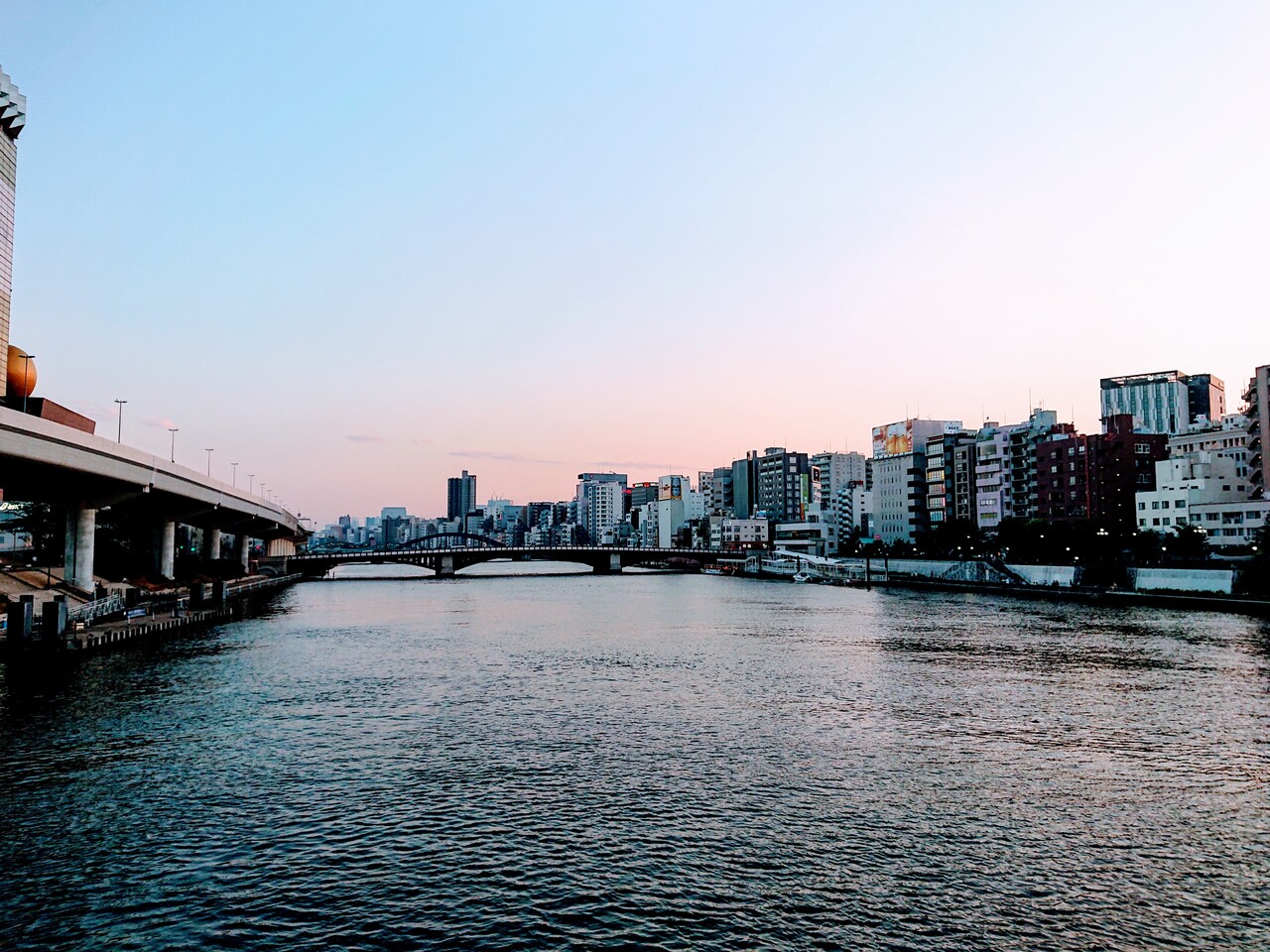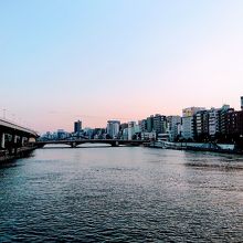 吾妻橋や言問橋といった自動車用の橋よりも、川から高めの場所にあるためか、橋の上からの眺めは素敵です。