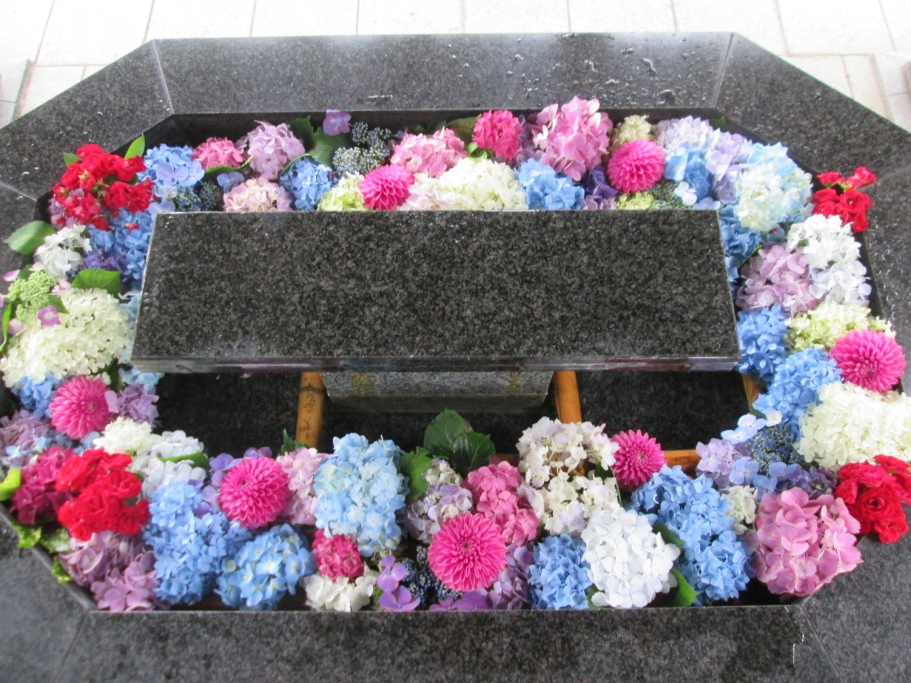初めて行われた花手水