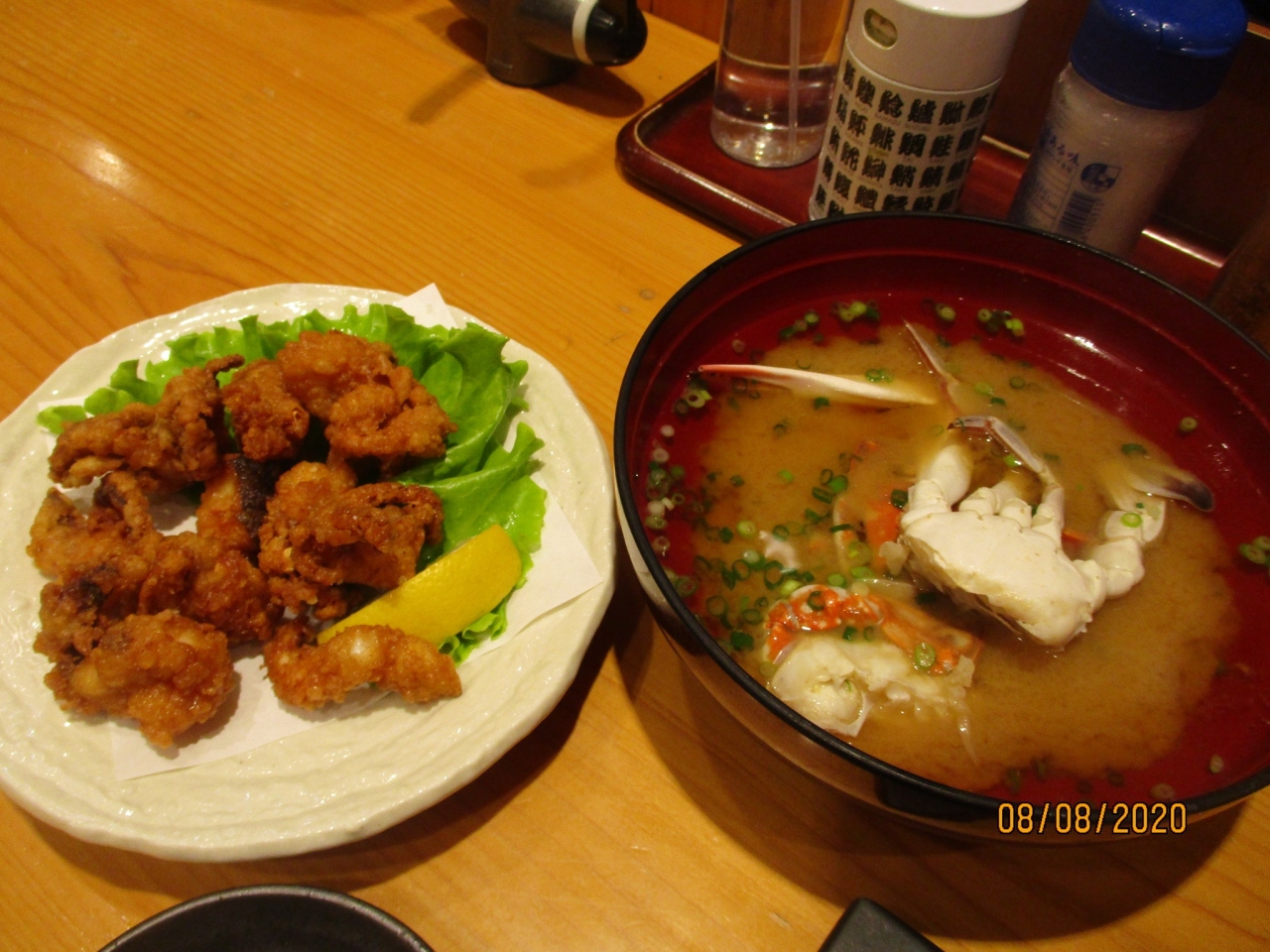 まぐろ贅沢三昧には蟹汁がついて2600円。 タコの唐揚げも注文してお腹いっぱいで大満足のディナーでした。 ディナーは時間が遅くなればなるほど混み合うので、早めの時間帯の方が待ち時間も短いかも。