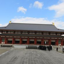 金堂の内部をみてまわった後に裏側から出ると前にあったのが大講堂でした。薬師寺の建物の中では一番の大きいようで横に長い建物でした。2003年に再建されたものなので建物に歴史は感じません。でも中には国宝や重要文化財の仏像などに日本最古の仏足石など貴重な物が数多くあり、それはよかったです。
