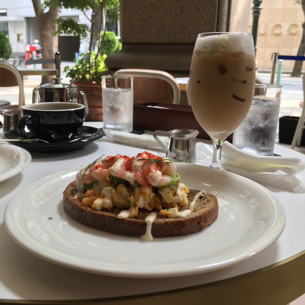 大丸神戸店の1Fにあるお洒落なオープンカフェです。オープンと共にモーニングで訪れました。普段は人通りも多く、店内も混雑気味ですが、平日の朝一の時間帯はとても空いていてゆったりとくつろぐことができました。カプチーノが有名なカフェで、本場イタリアのオープンカフェのようなお洒落な雰囲気が味わえます。