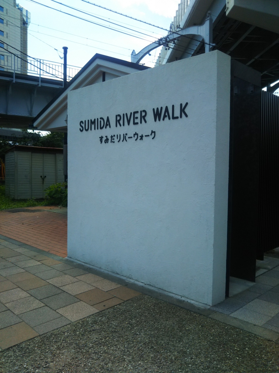 隅田川を台東区と墨田区を結ぶ遊歩道が設置されました。東武鉄道の線路の真下を歩くかんじですので、電車通過時は迫力があります。渡り終えると東京ミズマチがありました。川のおだわかな流れを見れ、癒されました。