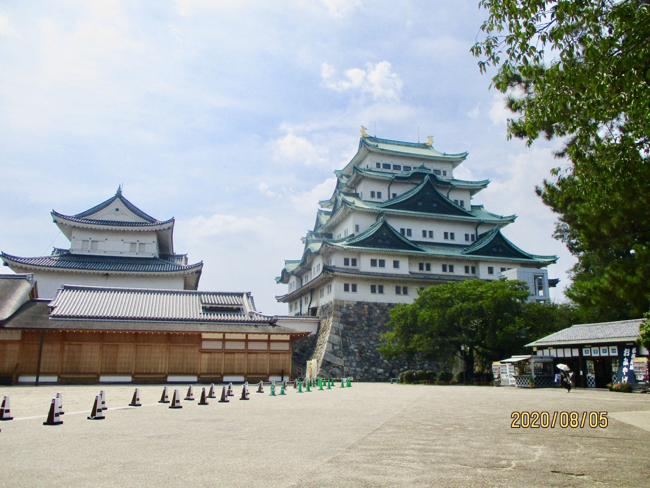 名古屋駅から地下鉄を乗り継いで市役所駅から少し歩いて金シャチ横丁を通り過ぎて東門から入りました。帰りは犬山城へ向かう為、正門近くにある案内所でスタンプを押して、犬山への道順を教えてもらいました。天守閣はただ今閉館中です。