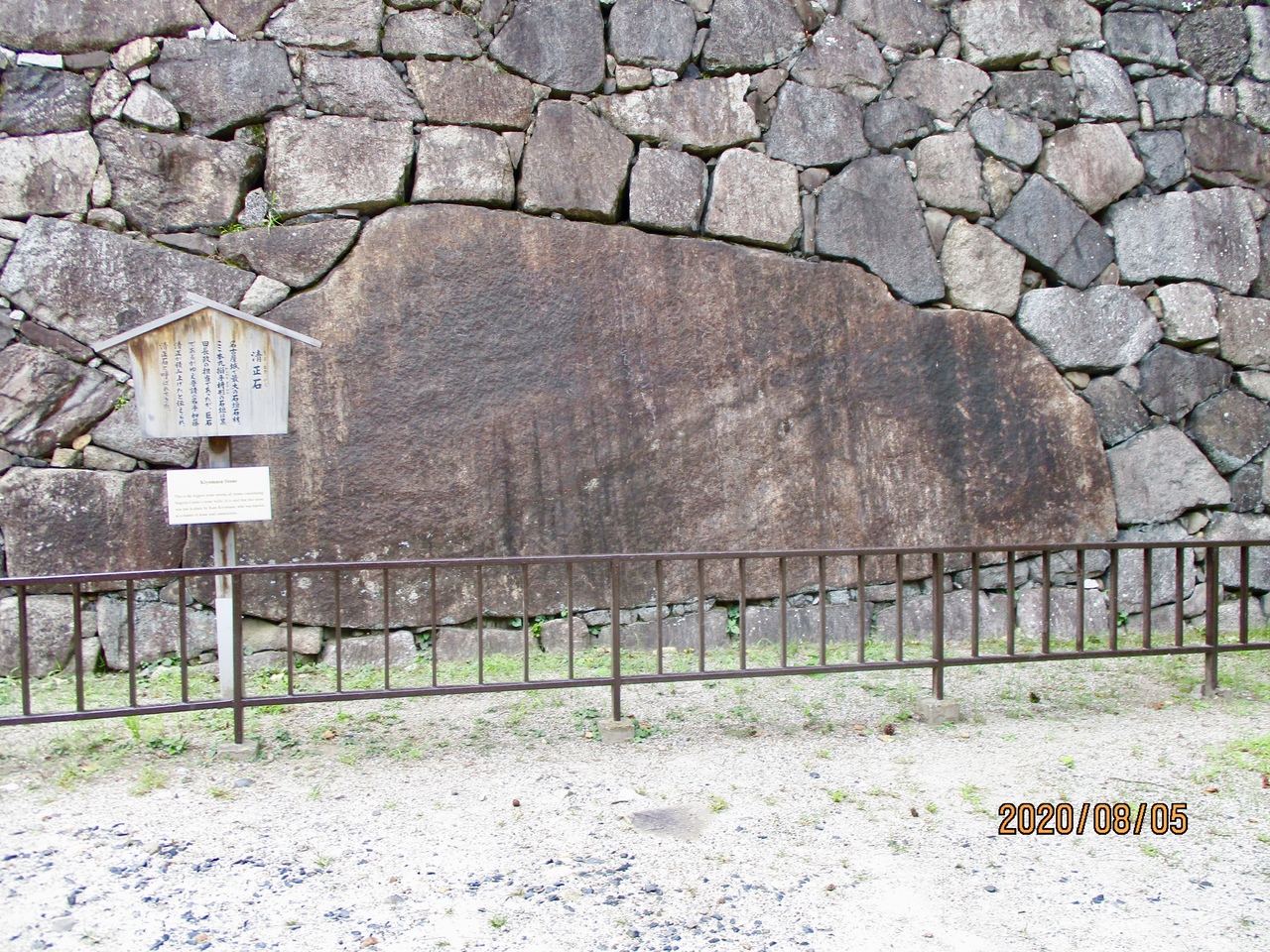 本丸の天守と対する位置、北東側に枡形の石垣があり、その中にひときわ大きな石がありました。運んだのはあの加藤清正だと伝えられていて、石の大きさは、横6メートル、縦2.53メートルの10畳敷きの巨石だそうです。
