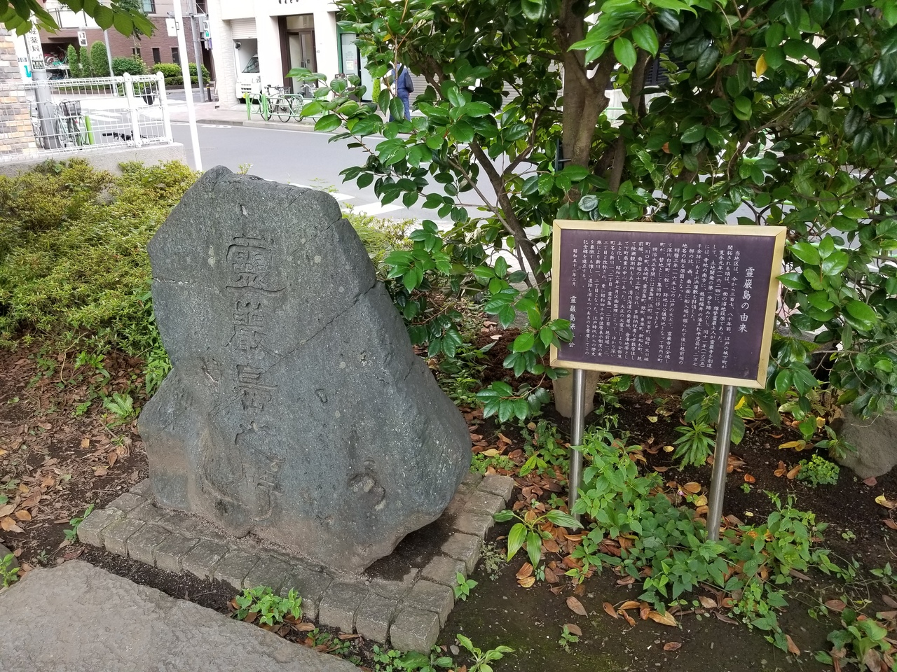 中央区新川1丁目にある越前堀児童公園の敷地内に霊巌島の碑が立っている。