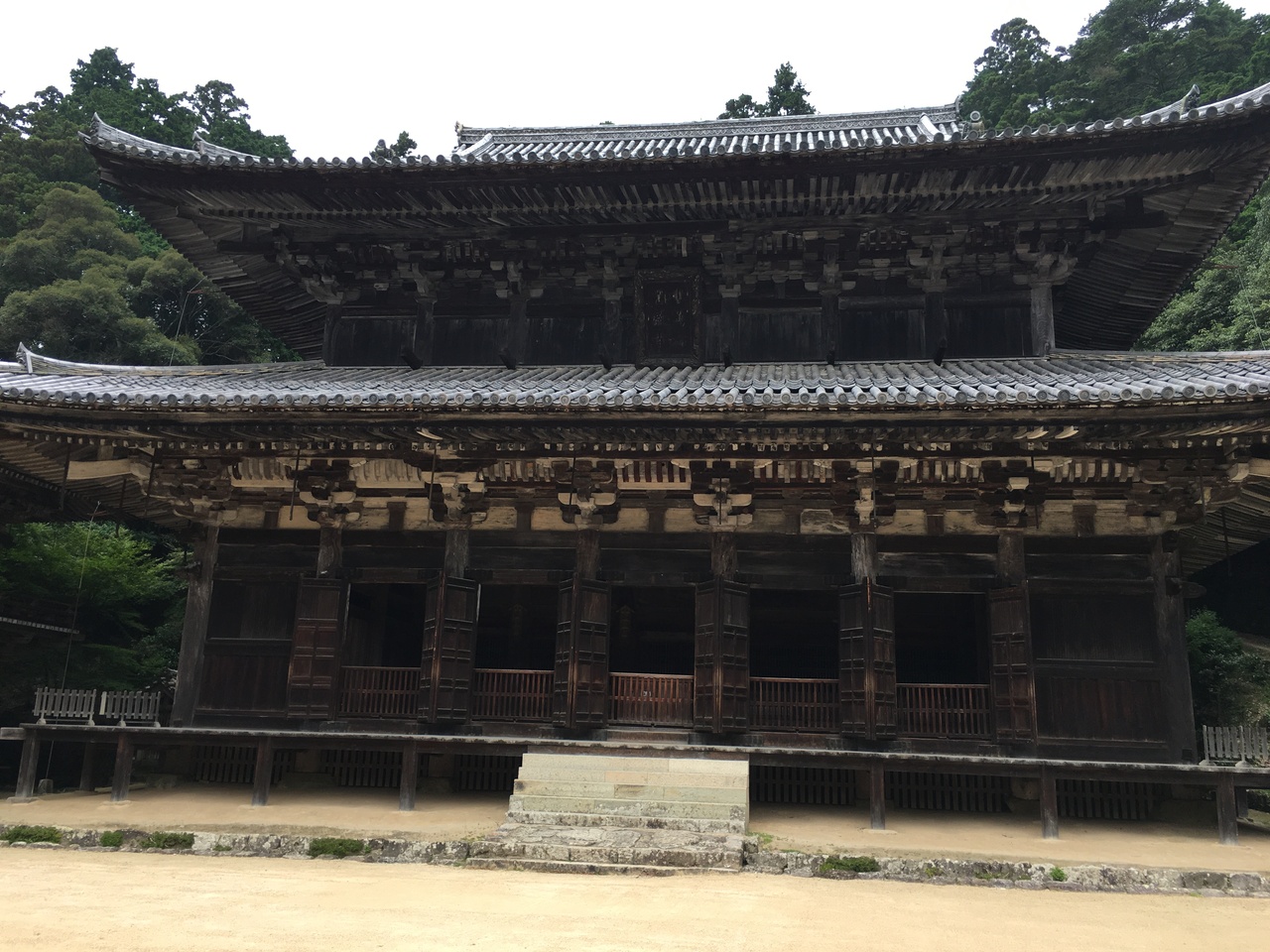 学問と修行の場で二層造りの圓教寺の本堂です。隣に建っている食堂、常行堂と併せて映画やドラマのロケ地で利用された場所です。階段を数段上がり中を覗くことが出来ますが、電気もなく暗い室内でした。本尊の釈迦三尊像が安置されています。