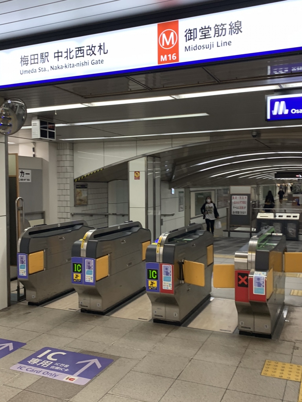 大阪メトロの1号線、赤いラインが 目印なのが【 御堂筋線 】です。