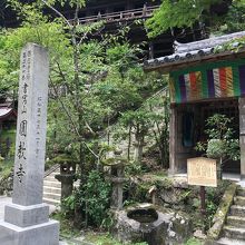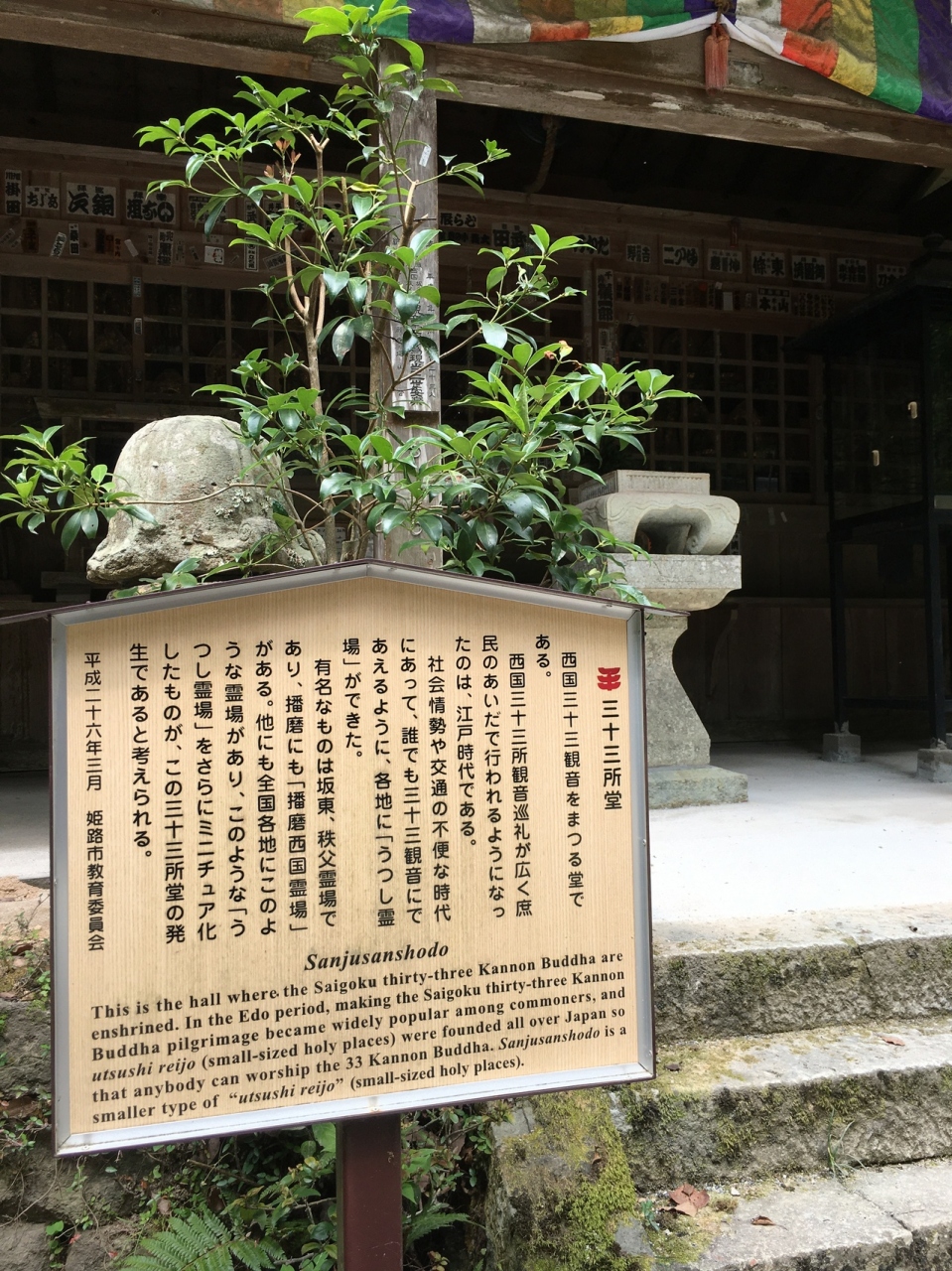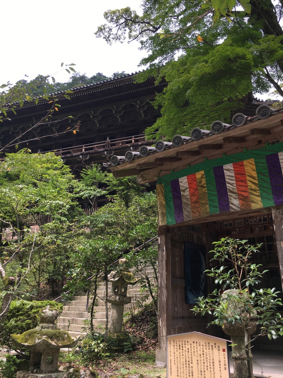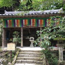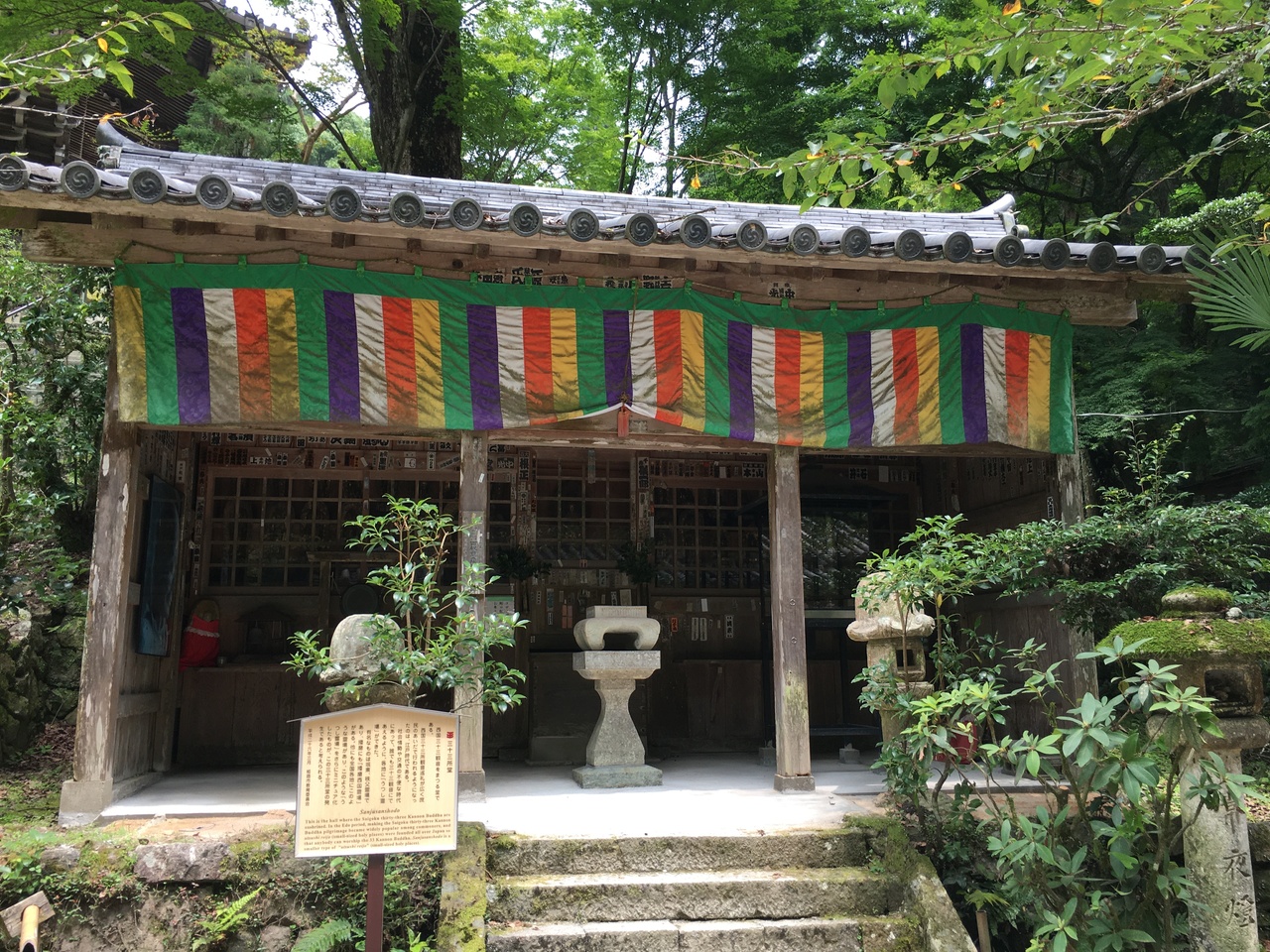 西国三十三観音を祀る堂で、摩尼殿に上がる階段の右下にありました。建物は古く年季が入っていましたが、前面の上部に垂れ幕が掛かりカラフルな色合いが目立ちました。数段の階段を上がって中にも入ることが出来、お堂らしい建物でした。