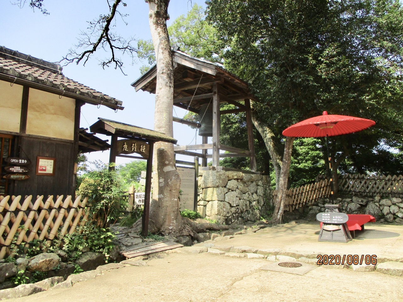 表門からひたすら石段をのぼって、ひたすら進むと、太鼓櫓の手前の太鼓丸に鐘を見つけました。思ったよりは小さかったですが、この鐘を江戸時代から絶えることなく、毎日3時間おきに鳴らしていると知って、大変驚きました。