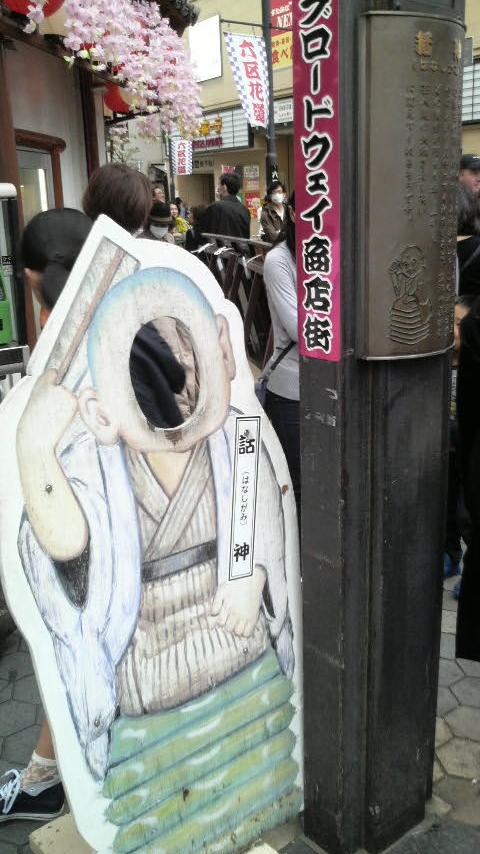 近くの浅草公園に芸能の神様「六芸神」が祭られていることにちなみ、道の脇の柱には「話神」などそれぞれの神様の説明板があったり、神様の姿で記念撮影できる顔出し看板があり、芸の街らしい魅力が増えていてより楽しめました。