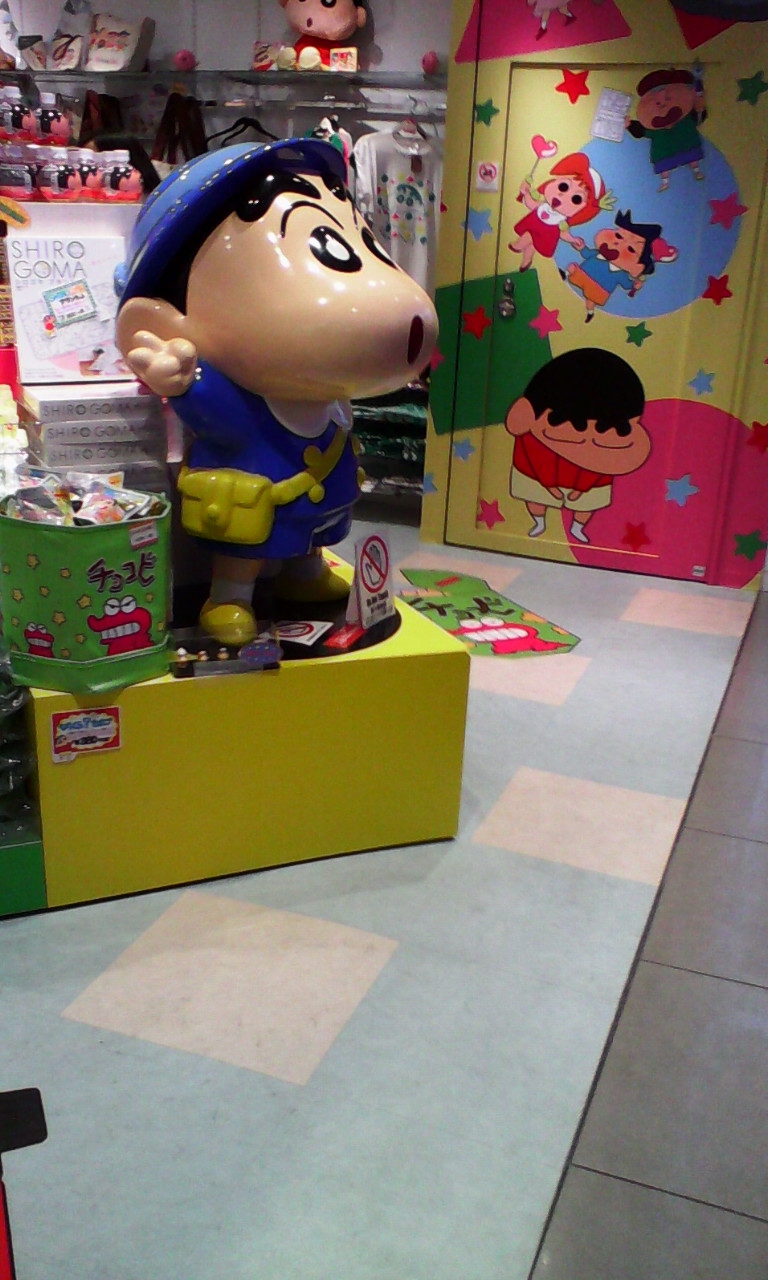 (店頭のしんちゃんの人形が幼稚園の服だったり、壁面にも色々なキャラが描かれていて良い雰囲気でした)