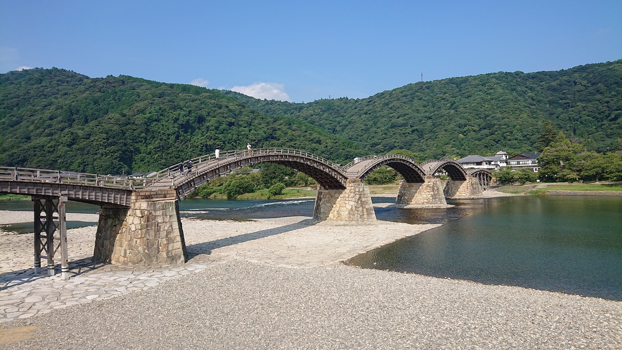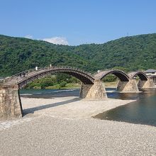 橋は近くの道路の歩道からみたり、歩いたりするのも良いですが河原におりて行くことが出来るので橋の下から木造の造りを見てみるのも良いと思います。