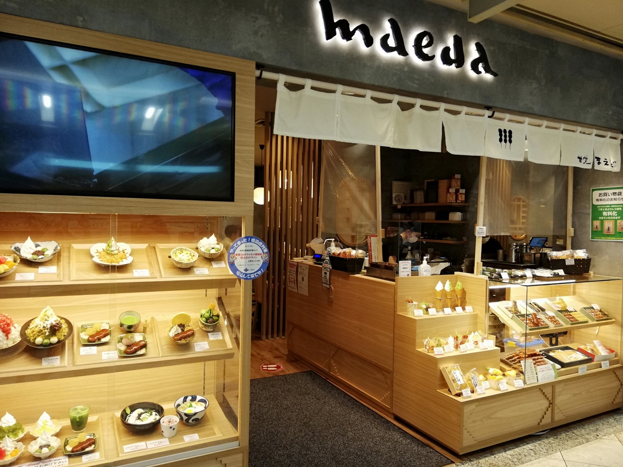 日本橋駅~OCATの地下街「なんばウォーク」のかなり日本橋駅側にある甘味処「maeda」です。みたらし団子は一本70円で、冷めても美味しいです。お土産にオススメです。喫茶コーナーでは、抹茶スイーツも楽しめます。