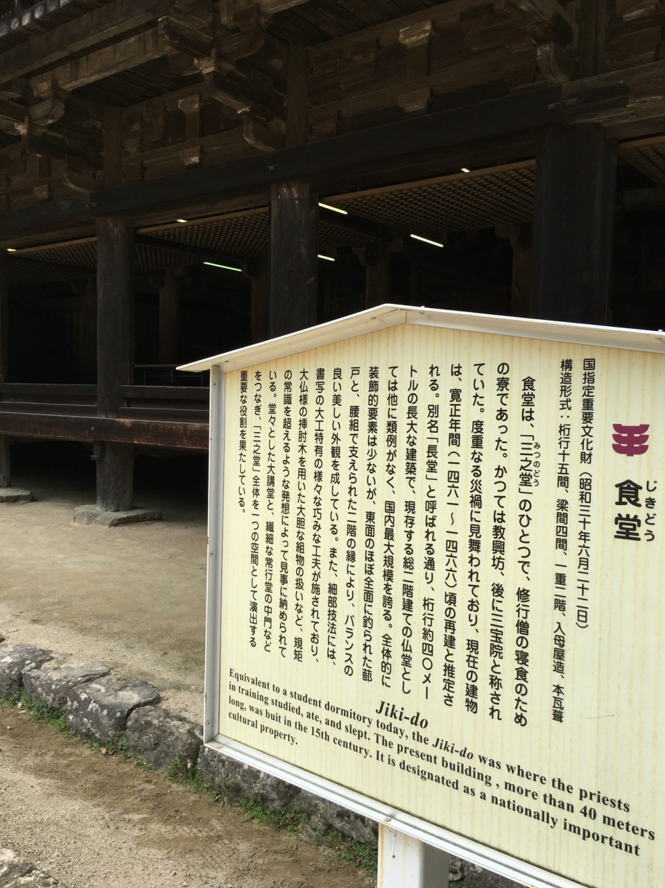修行僧の寝食のための建物で横長の大きな建物でした。靴を脱いで上がる事が出来、仏像等が展示されています。写経をする事ができ、机と椅子が外を向いて並べられ集中出来そうな場所でした。室町時代創建なので赴きがありました。