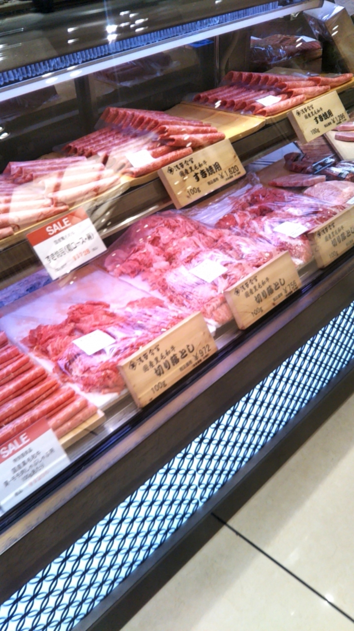 日本橋 三越本店の精肉売り場に出店している「浅草 今半 日本橋三越本店」は、やはり良い精肉がずらりと並んでいます。中には、SALE プライスとなっている精肉がありますが、やはり少し値が張るものが多いです。贈答品としても人気があります。