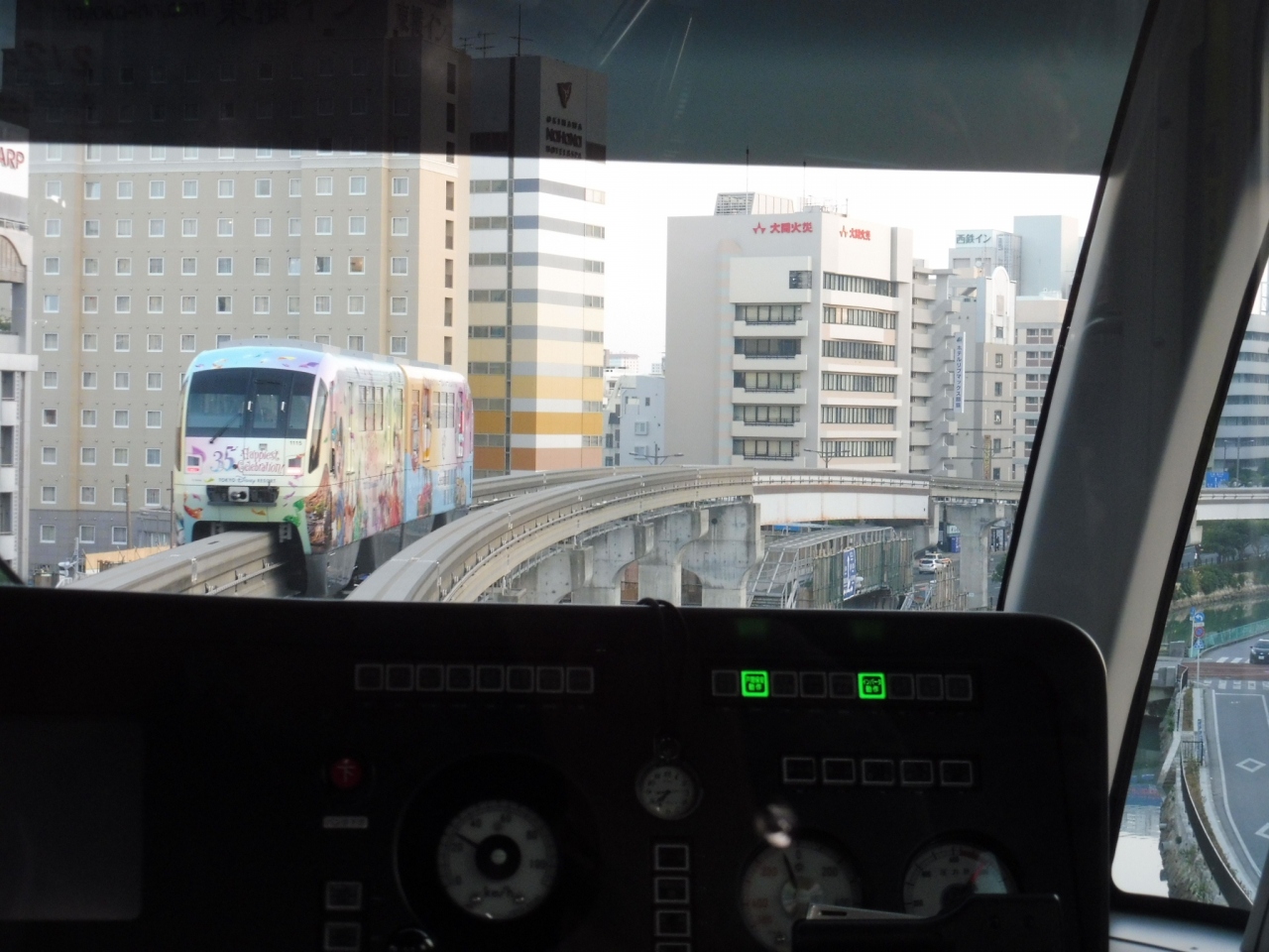 ゆいレールにはシンプルなグレーの車両以外に、様々なラッピング電車が走っています。