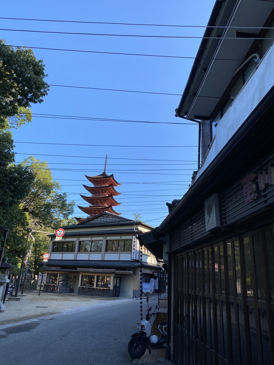宮島に観光に行った際、厳島神社から宮島フェリーに向かっておりました時に見つけました。朝早くに行きましたのでほぼ人がいない状況で、赤い建物が一際目立っており、なおかつ、荘厳な雰囲気を醸し出しておりました。