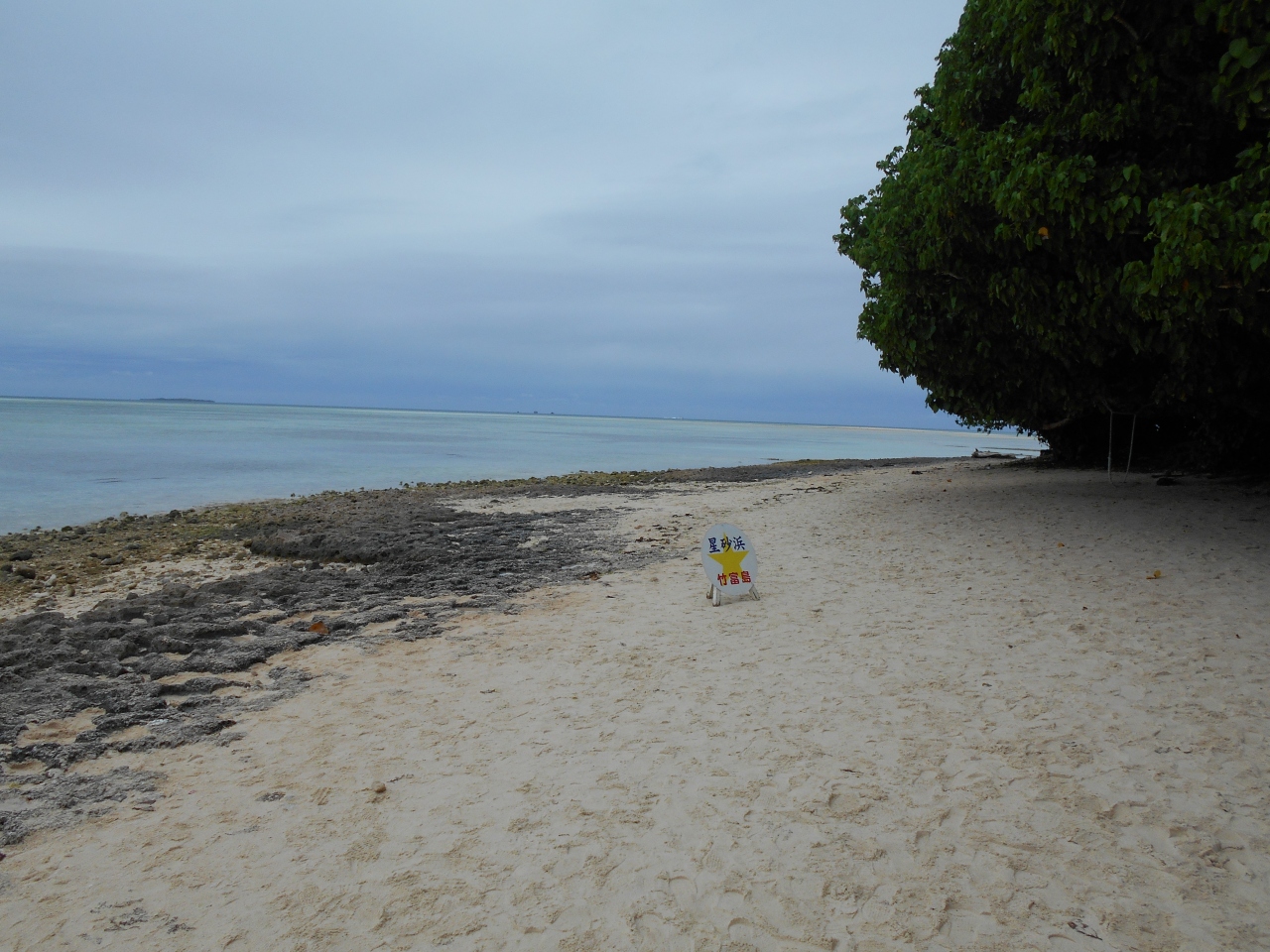 竹富港から観光バスで星の砂の浜として有名なカイジ浜に降り立ちました。バスガイドさんから星の砂の探し方のレクチャーを受け、早速、探しました。少しは採取できましたが、土産屋さんで販売している小さなガラス瓶程度を集めるのはとても無理です。星の砂の探しをやめ、エメラルドグリーンの海に白い砂浜を楽しみました。